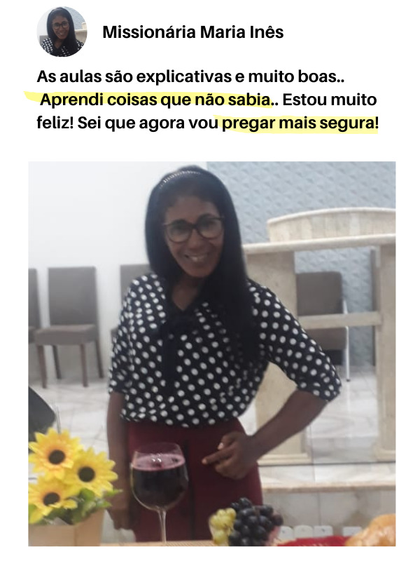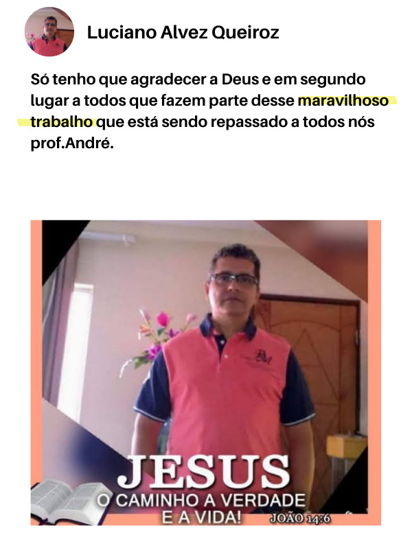 O Curso Pregador de Qualidade me abriu várias portas, estou pregando com mais Certeza e Qualidade. Não tenho palavras… como Deus usou estes professores com muita sabedoria …Vale a pena!